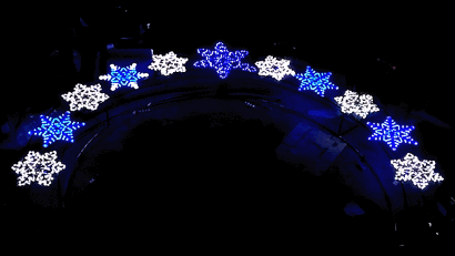 Новогоднее украшение для улицы Световая арка Двойные Снежинки теперь